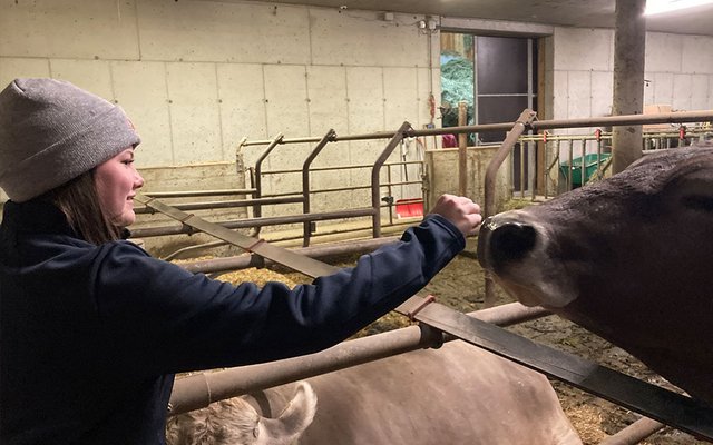 Julia zeigt uns ihre liebsten Tiere: die neugeborenen Kälber. Man merkt, wie sehr Julia ihren Bauernhof liebt. Er ist nicht nur Arbeit. Er ist ihr Zuhause.