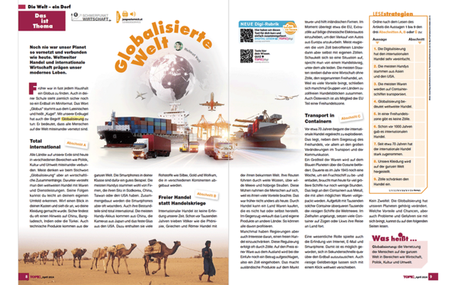 Hier haben wir den Text „Globalisierte Welt“ (April-TOPIC, S. 8–9) kurz und einfach zusammengefasst.