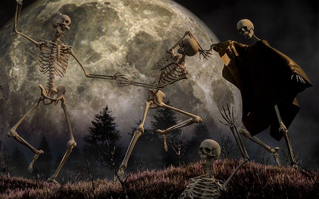 Halloween ist Gruselzeit. Und in manchen Herbstnächten, so erzählt man sich, steigen die Toten aus ihren Gräbern und tanzen miteinander. Alle sind jetzt gleich – der Reiche tanzt mit dem Armen, der König mit dem Bettler. Aber wehe dem, der einem Toten das Leichenhemd stiehlt.