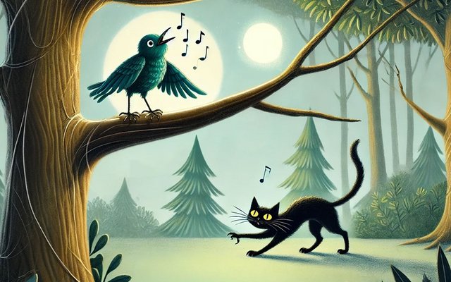 Ein schwarzer Kater schleicht herzu,